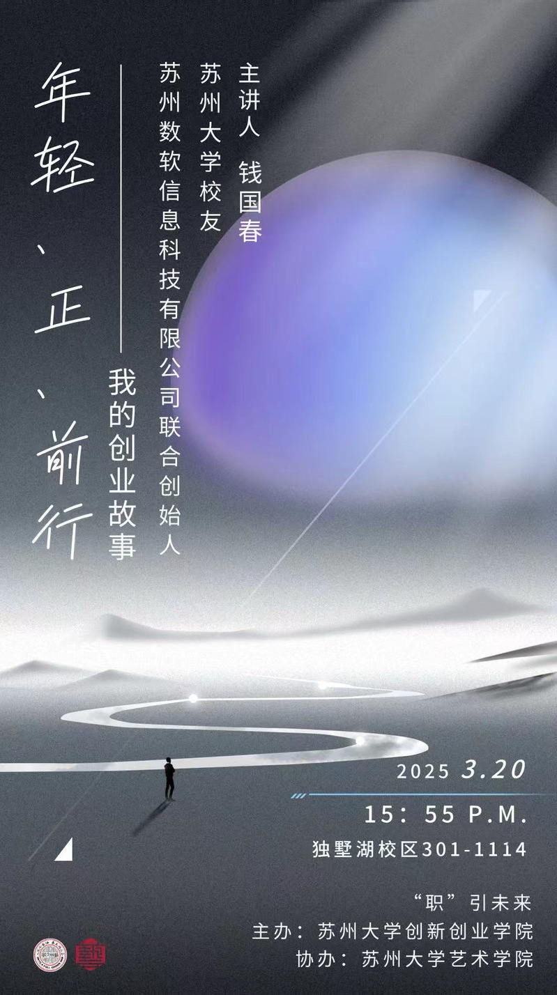各学院(部)、书院:为帮助学生深入了解当前就业创业形势,启发创业梦想,苏州大学创新创业学院主办、苏州大学艺术学院协办的“‘职’引未来” 系列活动即将开启。现将本次活动相关事宜通知如下: