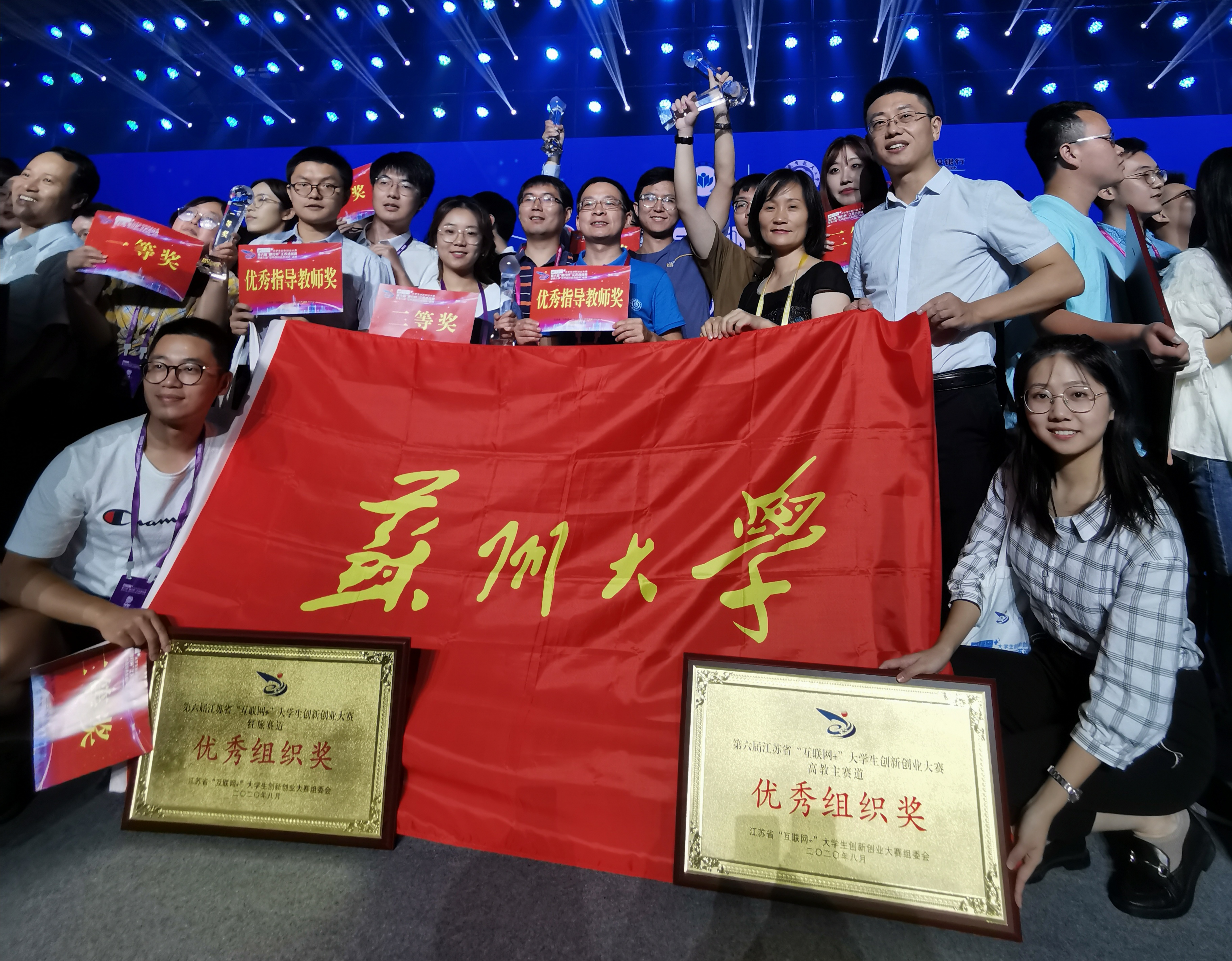 第六届中国国际“互联网+”大学生创新创业大赛江苏省决赛于2020年8月24日在南京航空航天大学落下帷幕,我校推选的项目在比赛中获得一等奖5项、二等奖7项、三等奖5项,苏州大学获得高教主赛道“优秀组织奖”和红旅赛道“优秀组织奖”。