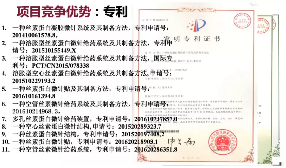 在比赛现场,苏州大学纺织工程(中外合作办学)专业毕业生、帝国理工学院2019级先进材料专业硕士研究生王毅楷向评委专家详细介绍了“丝素蛋白微针经皮给药系统”研究的进展情况。“围绕这个研究,我们获得了二十多项专利,发表了十多篇高质量论文,通过了致敏试验、皮肤刺激、细胞毒性等一系列检验,即将进入临床试验。”听了王毅楷的一番介绍,评委专家点头赞许,并期待研究成果早些得以应用,让患者早些用上新产品。