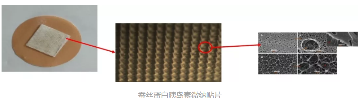 使用这种技术生产的蚕丝蛋白胰岛素微纳贴片,可以实现2-3天甚至更长的时间,为患者持续、定量地提供胰岛素。贴片大大提升了糖尿病患者的治疗体验,提高了胰岛素的生物利用度,将可以为每位患者每年节省至少3000元的治疗费用。
