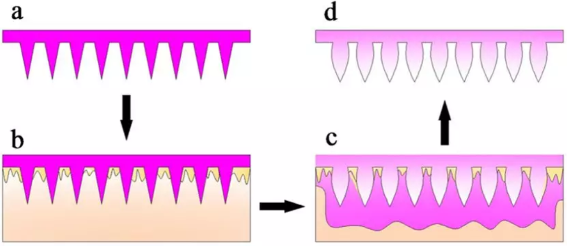 卢神州教授主要从事蚕丝蛋白生物材料方面的研究,近年来一直指导学生参与丝素蛋白微针制备研究。“蚕丝主要由丝胶蛋白和丝素蛋白组成,研究中我们发现丝素蛋白易提纯、可降解、天然无毒、无免疫原性,是制备微针的良好材料。” 研究团队成员、英国布里斯托大学博士研究生殷祝平同学说,制备微针过程中使用了材料微观聚集态控制技术、纳米孔分子通道控释技术,使得微针在皮肤表面打开微孔,药物通过微针中的纳米通道缓释进入体内。由于微针短而细小,不触及神经及血管,因此实现了无痛给药。与此同时,这些技术通过对丝素蛋白聚集态结构的有效控制,实现了胰岛素的长期稳定释放。