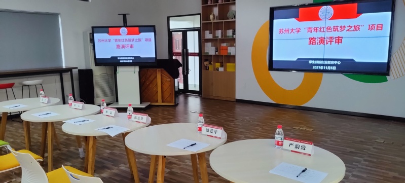 11月5日下午,在天赐庄校区举办“青年红色筑梦之旅”项目结项评审活动,全校经过多伦次筛选,从上报的60多个项目中,层层选拔,最终3个项目脱颖而出,进入到最终的评审环节。本次评审,学生创新创业教育中心邀请到校内5位专家学者作为评委,他们分别是来自宣传部的孙磊老师,来自江苏苏大投资有限公司陈彦艳总经理、来自国家大学科技园管理中心的田天老师,来自学生工作部(处)的潘爱华老师,来自招生就业处的张芸老师以及来自团委的严韵致老师。本次活动由刘海老师主持。