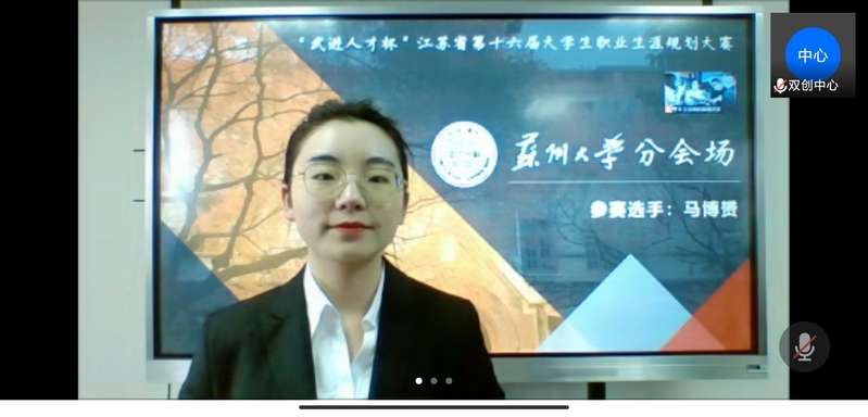 在省赛中,马博赟同学以“以书为伴墨舞当哥”为题,讲述了自己耕耘书法17载,立志成为书法行业CEO的职业探索和发展。她将对书法的热爱,融入到日常的学生生活中,将书法作为传播中国文化的一种方式,在刚刚结束的苏州大学书法比赛中,她也荣获最高奖项。蒋晓亮同学结合自己的学生工作经历和对于高校学生的热爱,希望成为一名高校辅导员,继续发挥自己的正能量。朱舒同学立足本专业,坚定成为一名微纳加工项目经理,期待着在利用高端加工技术完成微米和纳米尺度的制造项目,为祖国的高端制造业添砖增瓦。朱奕玮同学的亲身经历让他有感于生命的艰辛,卓越的血液内科医师是他践行社会责任、矢志不渝的梦想。王泽元同学将成为医务社会工作作为自己的职业规划目标,利用专业社会工作知识开展防疫工作,与无数医护工作者一道守护人民生命安全。