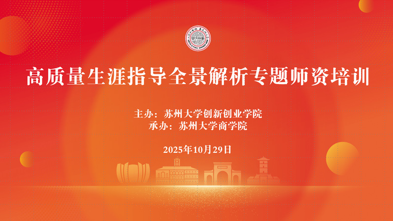 为提升我校大学生职业规划大赛的组织水平与育人实效,10月29日下午,苏州大学创新创业学院开展了高质量生涯指导全景解析专题师资培训,本次活动由苏州大学商学院承办。