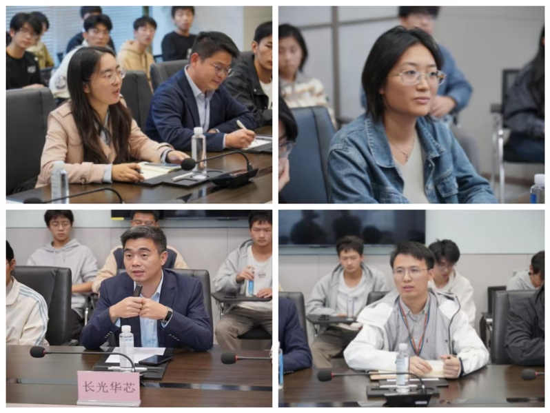 在交流讨论环节,同学们围绕半导体激光技术的发展方向、大学生如何提升行业竞争力以及企业对应届生的要求等方面踊跃提问,企业人员逐一进行解答。其中,李刘晶作为“苏大校友+长光华芯员工”的双重代表,为学弟妹们给予学习和成长指导。他期待大家主动关注行业政策与技术迭代,积极参与科研项目,为未来积累实践经验。通过深度交流,同学们不仅对光电产业的人才需求标准有了清晰认知,更对个人发展方向有了更深刻的思考。