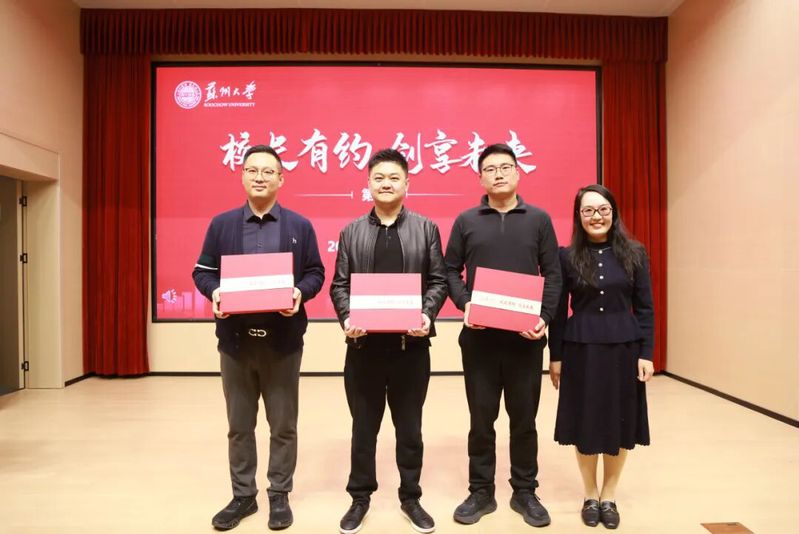 王云杰代表学校向李游、华鑫、王顺开颁发“苏州大学就业创业导师”聘书,期待他们以实战经验反哺母校,为学生的创新创业实践提供持续指导与支持。