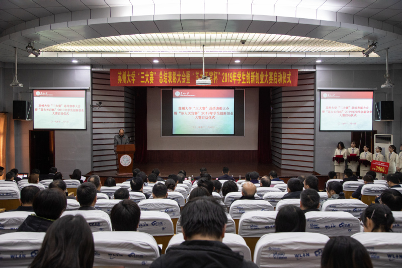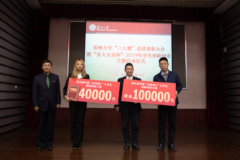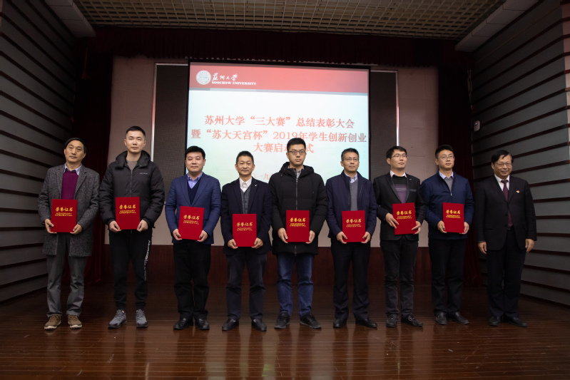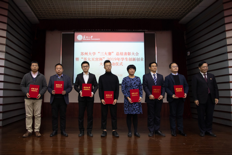 第十六届“挑战杯”全国大学生课外学术科技作品竞赛和第五届中国“互联网+”大学生创新创业大赛日前已经顺利落下帷幕。为表彰先进、总结经验、进一步推动我校创新创业教育改革,12月6日下午,我校举行苏州大学“三大赛”总结表彰大会暨“苏大天宫杯”2019年学生创新创业大赛启动仪式。校长熊思东,校党委常委、总会计师周高,校党委常委、副校长刘标,共青团江苏省委兼职副书记、苏大天宫创业投资管理有限公司总经理袁方,校创新创业教育改革领导小组成员单位负责人,各学院(部)党委书记、院长,分管学生工作的党委副书记,具体负责“三大赛”组织工作的老师,获奖团队代表及指导老师出席大会。会议由刘标主持。
