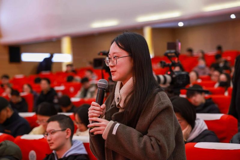 互动交流环节气氛热烈,同学们围绕时代脉搏与个人成长等话题积极提问。高志凯学长一一作答,既有理论高度的指引,又有实践层面的建议,让在场学子深受启发。现场思想碰撞频频,掌声此起彼伏。