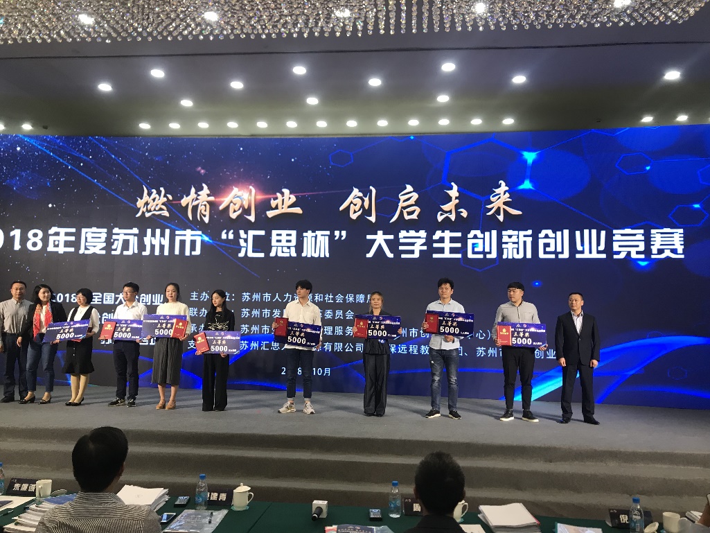 苏州大学获得了2018年度苏州市“汇思杯”大学生创新创业竞赛“优秀组织奖”。