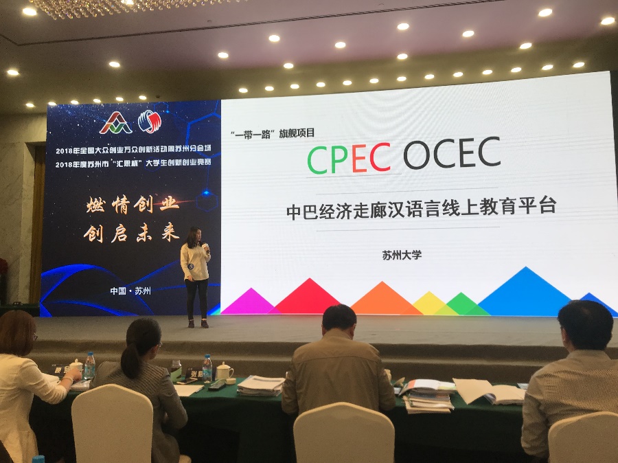 本次大赛共有来自各在苏高校在读专科生、本科生、及硕士、博士研究生等100余个创业项目团队报名。经过初审12个项目团队进入决赛,入选的12个团队均为在苏高校在读或本校毕业5年内的大学生。在决赛现场,12各团队通过“5+4”模式(5分钟项目介绍、4分钟评委提问)进行了路演赛比拼。我校选派的 “中巴经济走廊汉语言线上教育平台”和 “刺绣艺术传承保护与创新应用”两个学生创业项目代表苏州大学参加了决赛并斩获二、三等奖,苏州大学获得“最佳组织奖”。另外,“良缘母婴”创业项目凭借优异的表现成功入选“蒲公英”创业项目。