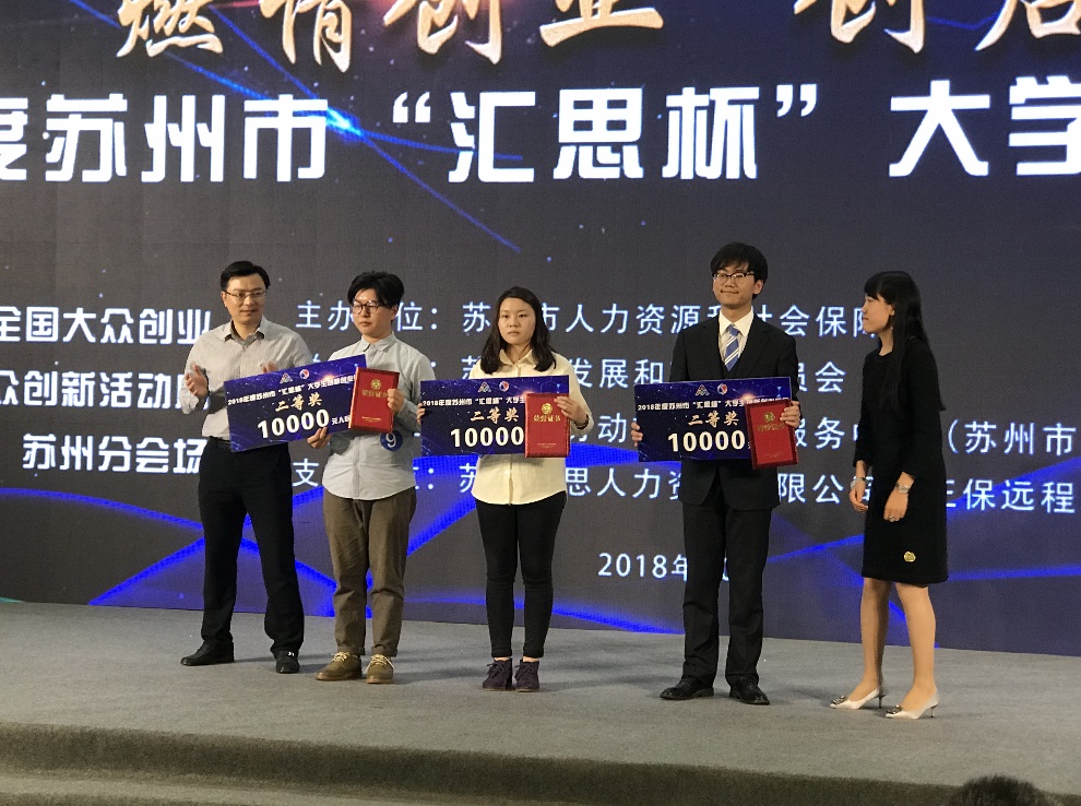 获奖团队分别获得了一万、五千、一千的现金奖励,二等奖获得者李文钰同学的创业团队还将在11月代表苏州市参加“中国 • 苏州”大学生创新创业大赛决赛。