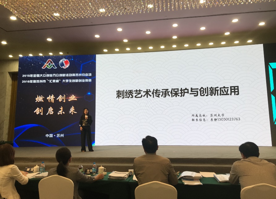 我校艺术学院李静同学的创业项目是“刺绣艺术传承保护与创新应用”,主要通过研究高科技在刺绣中的运用、新型材质在刺绣中的运用以及对引力波波形、刺绣线条及针法的研究,结合高科技与新材质的运用生产出一种新的刺绣形式、新的刺绣生产模式、新的刺绣营销模式。同时结合时代的审美,使刺绣可以被更广泛的运用。该项目最终获得2018“汇思杯”大学生创新创业竞赛决赛三等奖。